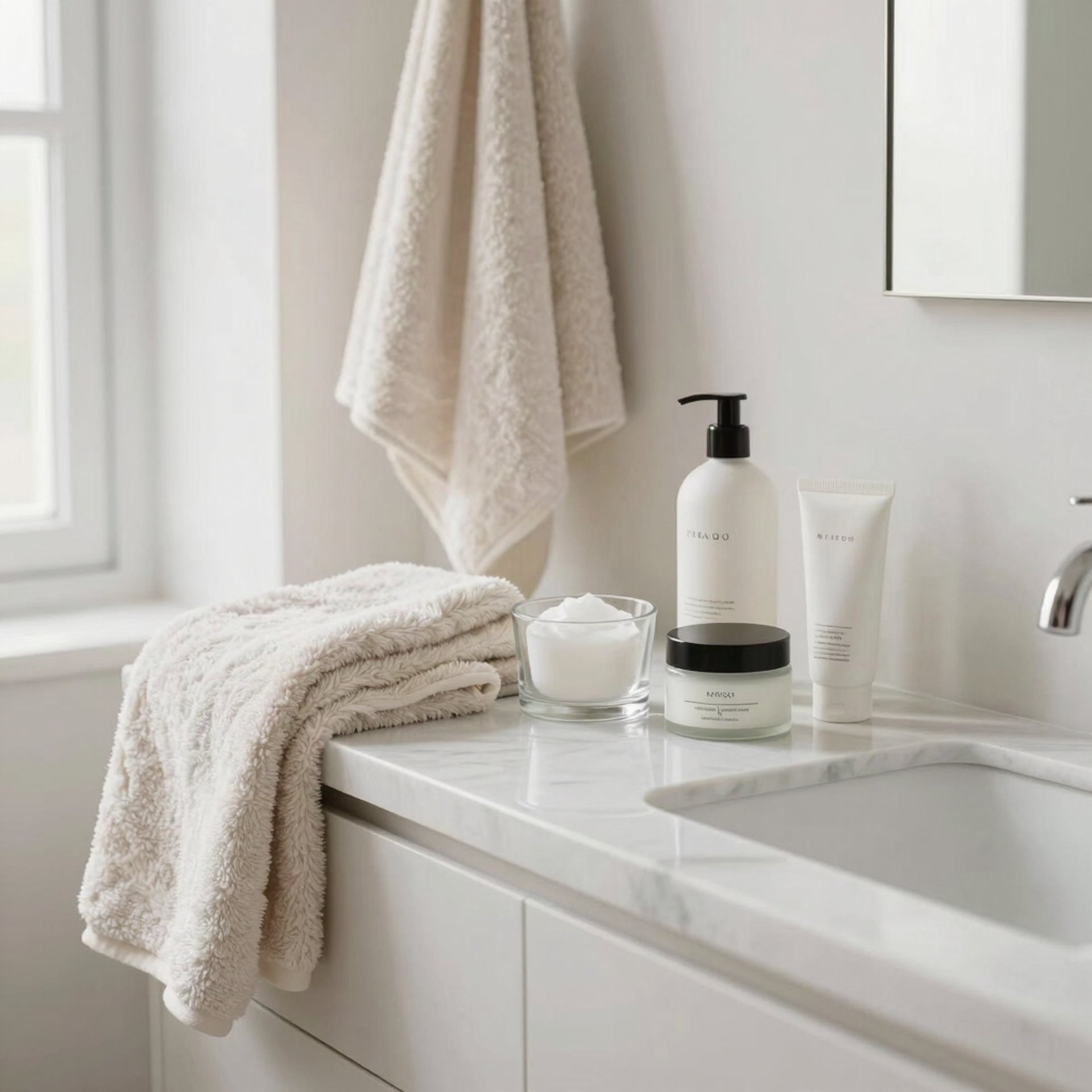 A fresh, minimal bathroom vibe with soft neutral tones.